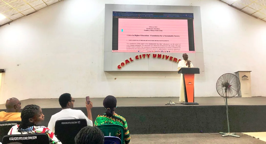 The Coal City University Auditorium, Enugu, was filled with admiration and reflection on 12th November 2025, as Very Rev. Msgr. Prof. Obiora Francis Ike, Founder and Director of CIDJAP, delivered a compelling lecture at the Third Edition of the Distinguished Speakers Lecture Series. His presentation, titled “Ethics in Higher Education: The Foundation for Sustainable Leadership,” highlighted the indispensable role of moral values in shaping responsible citizens and visionary leaders.