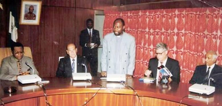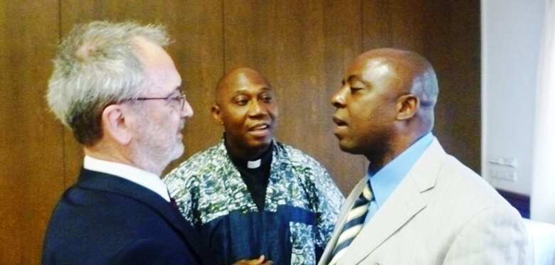 Bishop of Zaria(c), Prof. Robert Zinser(l) and Msgr. Ike(r) during