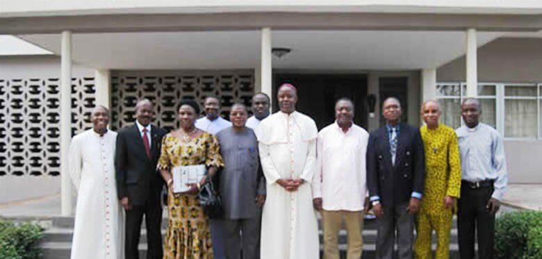 Msgr. Ike with Gen. Abdulsalami Abubakar (Rtd), Bishop Matthew Kukah, Mr Clement Nwankwo and others