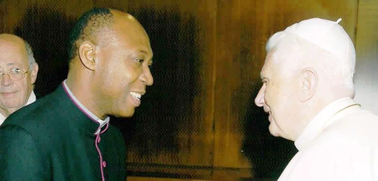 Msgr. Obiora Ike with His Holiness, Pope emeritus Benedict XVI in
