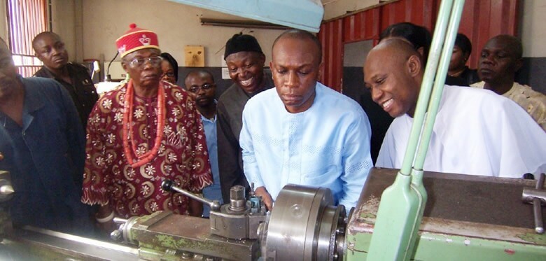 Msgr. Obiora Ike conducting guests around the Vocational Technical