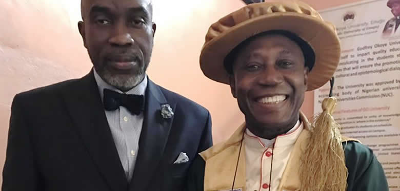 Prof. Chidi and Msgr. Ike at the Inaugural Lecture of Godfrey