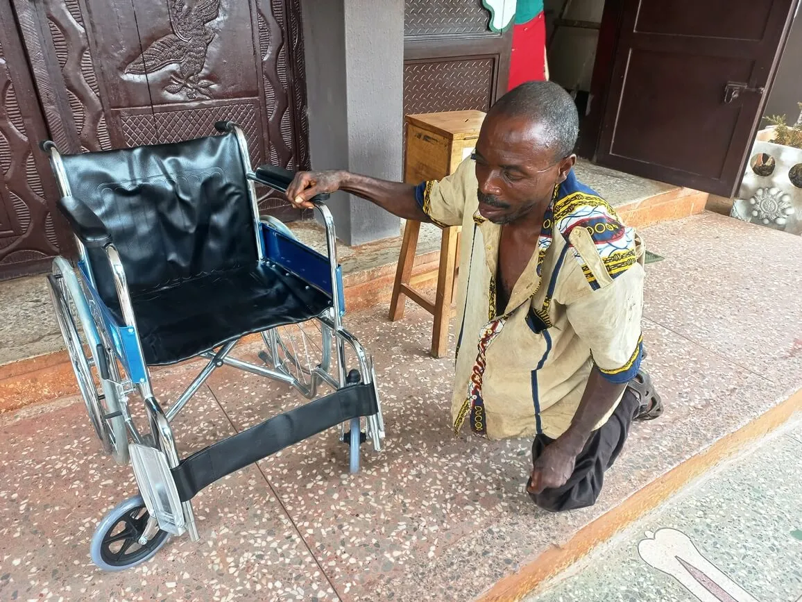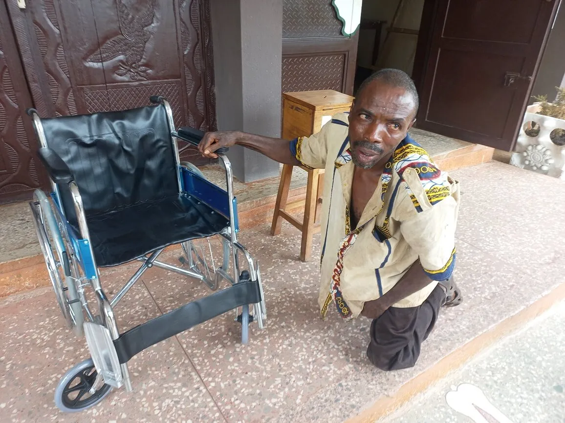 The wheelchair was handed over to him by the Deputy and Assistant Directors of CIDJAP. This gift was to enable him move around freely. After receiving the gift, he leaped for joy with and thanked CIDJAP for being in forefront of the needy and downtrodden in Nigeria. He prayed God to bless the Founder, Very Rev. Msgr. Obiora Ike and all the workers at CIDJAP.